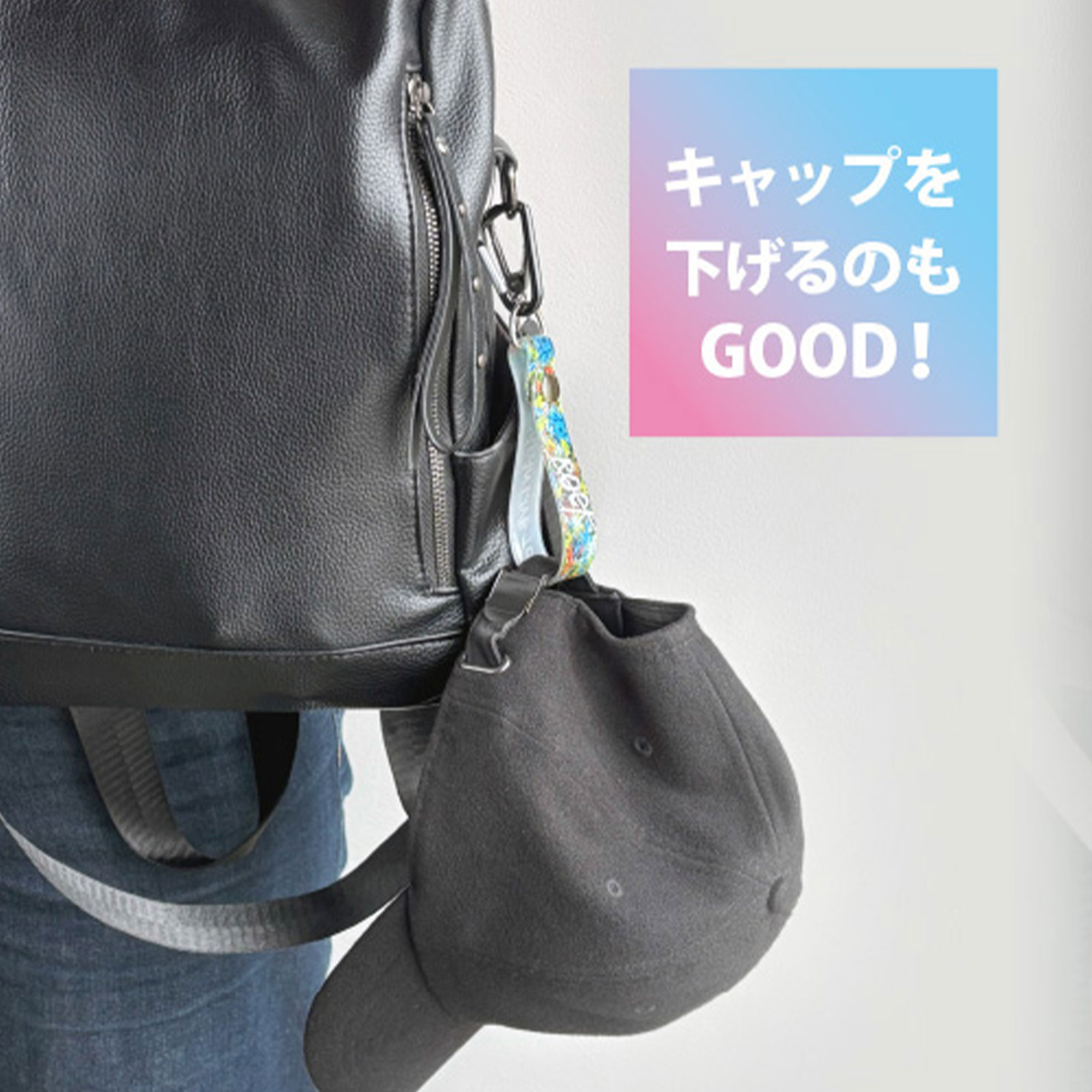 タオルの他にも、リストバンドやラバーバンド、キャップ(帽子)も下げることができます。
