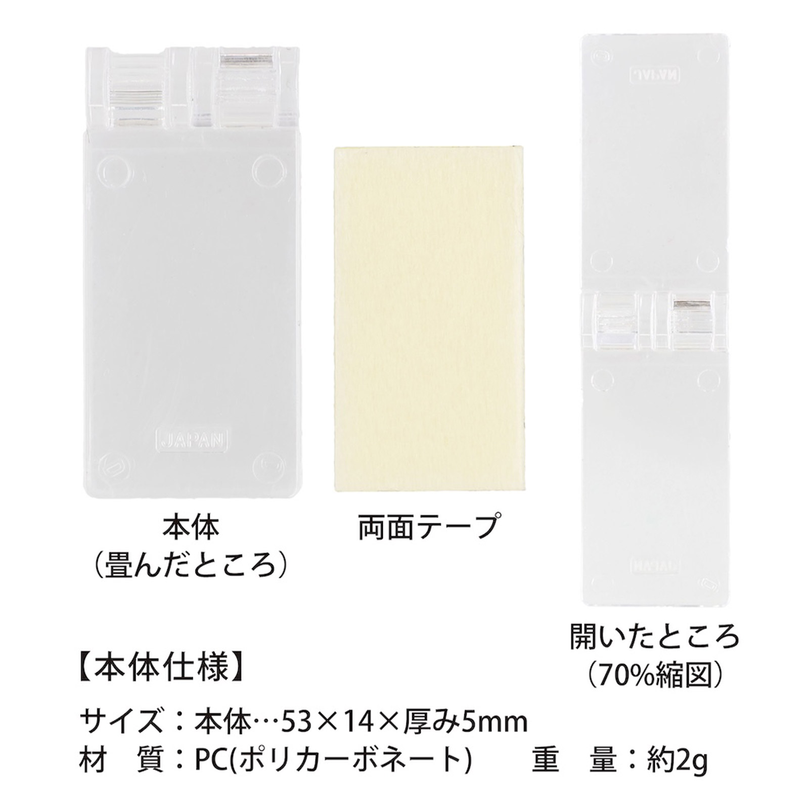 | サイズ | サイズ:広げたときW14×H53×厚み5mm 畳んだとき…W14×H29×厚み5mm |