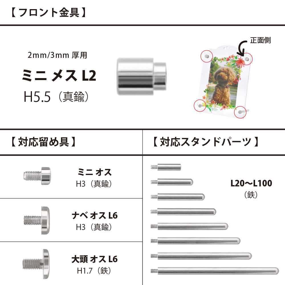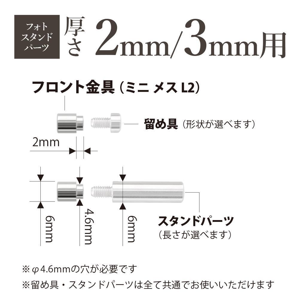 フォトスタンドパーツ フロント金具 2mm/3mm厚用 ミニメスL2 真鍮製 ニッケル
