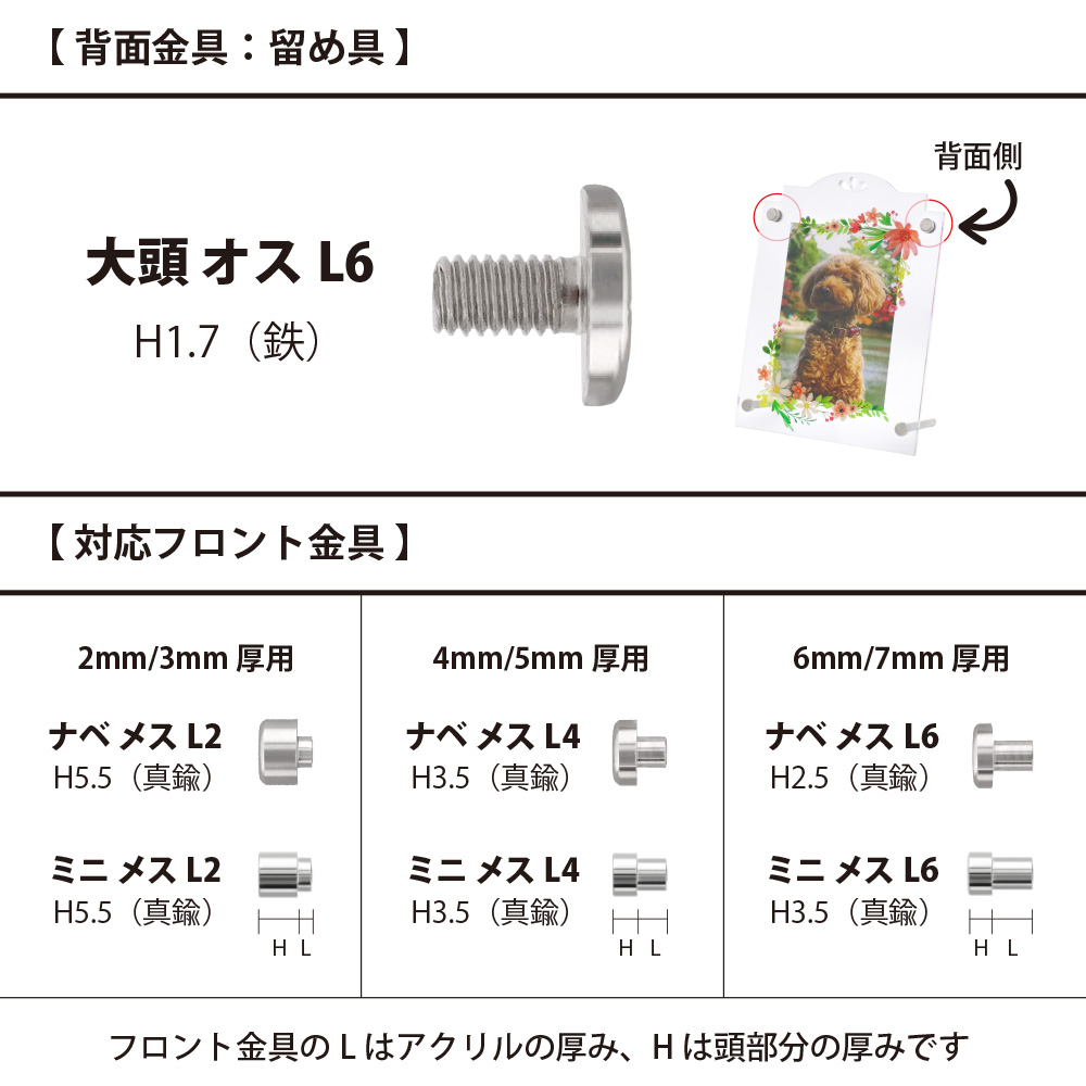フォトスタンドパーツ 背面金具 留め具 大頭オスL6 鉄製 ニッケル