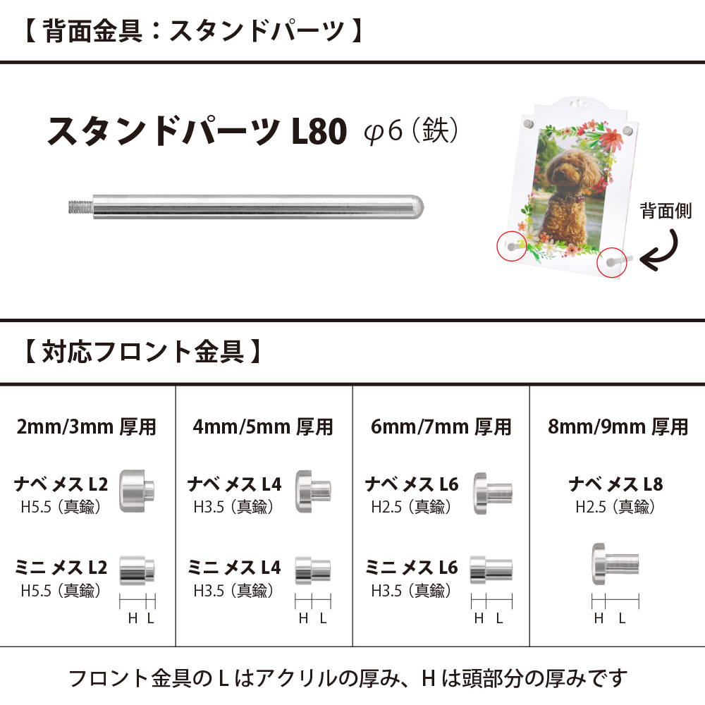 アクリルプレートに最適な、スタンド用パーツ。